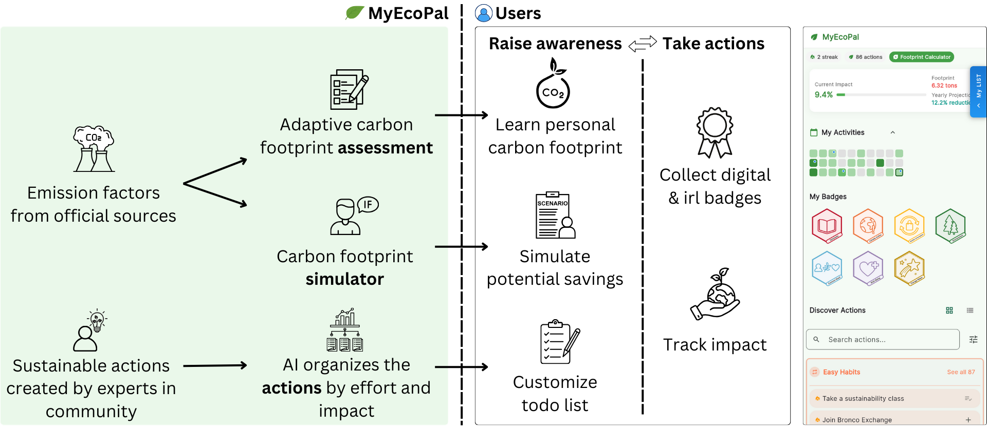 During our exploration of bridging the gap between knowing and doing in MyEcoPal, we also learn many approaches to faciliate and to motivate the positive behavior change, habit building, and complex decision making. Stay tuned...