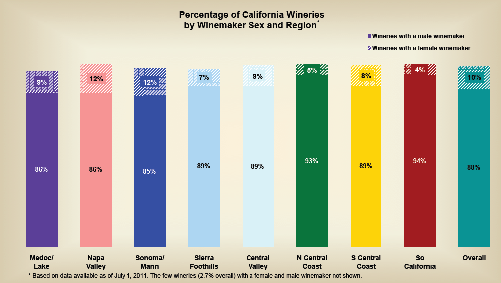 According to our data, 9.8% of California's wineries have women as the main or lead winemakers.